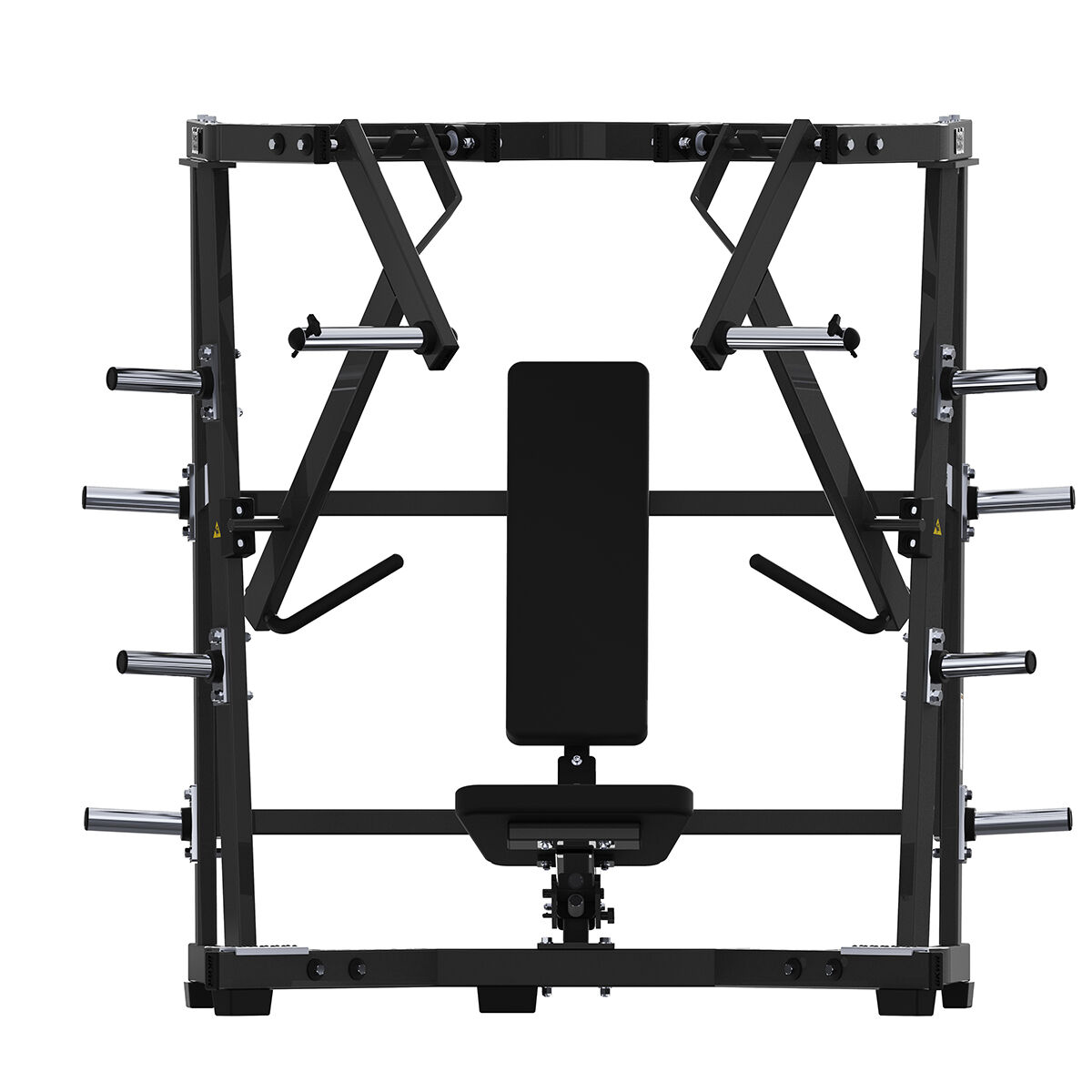 In commercial gyms, the chest training area is one of the most frequently used and most visually impactful areas for showcasing training results. How to efficiently and safely help members sculpt a full, three-dimensional chest with a clear midline, while effectively preventing and correcting asymmetry in strength and form caused by long-term training imbalances (such as uneven force exertion on the left and right sides, and over-reliance on lower chest training), has become a key challenge for improving long-term member satisfaction, enhancing loyalty, and building a professional reputation. While traditional fixed-track chest press machines offer safety, their "one-size-fits-all" movement trajectory is difficult to adapt to different trainees' scapular structures, humerus lengths, and joint range of motion, often limiting the optimal range of muscle contraction, especially making it difficult to accurately stimulate the upper chest (clavicular region), which determines chest shape and firmness. On the other hand, free weight exercises such as barbell or dumbbell incline bench presses, while providing a more natural movement path, place extremely high demands on shoulder joint stability, movement control techniques, and external protection under heavy weights. This not only increases the risk of injury for beginners but also reduces equipment efficiency and user experience during peak hours due to the need for partners or coaches for protection. The split-motion wide-angle chest press machine is designed to systematically and precisely address these complex challenges. Its solution is built upon two core innovations: First, the seat and pressing trajectory are fixed at a "golden incline angle" of 30°-45°. Biomechanical research has proven that this angle optimizes fiber recruitment and mechanical tension in the upper pectoralis major (clavicular region), directly targeting the common weakness of underdeveloped upper chest muscles. Second, its revolutionary left-right completely independent and non-interfering movement and load system forces each side of the chest, shoulder, and arm muscles to bear their own load independently. This not only immediately reveals the strength and endurance differences between the left and right sides but also allows trainees or coaches to precisely adjust the load and compensate for the weaker side, thereby building muscle while shaping a balanced and symmetrical chest shape. Therefore, this machine is not merely a simple variation of the chest press; it is a next-generation chest muscle training solution that integrates precise angle positioning, personalized adaptability, and asymmetry correction. It enables members to focus on developing upper chest size and separation under absolutely safe and optimal conditions; it is also a strategic asset for gyms to optimize personal training assessment tools, conduct targeted corrective training, and showcase the scientific depth and meticulous care of training with its distinctive professional design, ultimately driving the dual improvement of member results and the professional image of the venue.