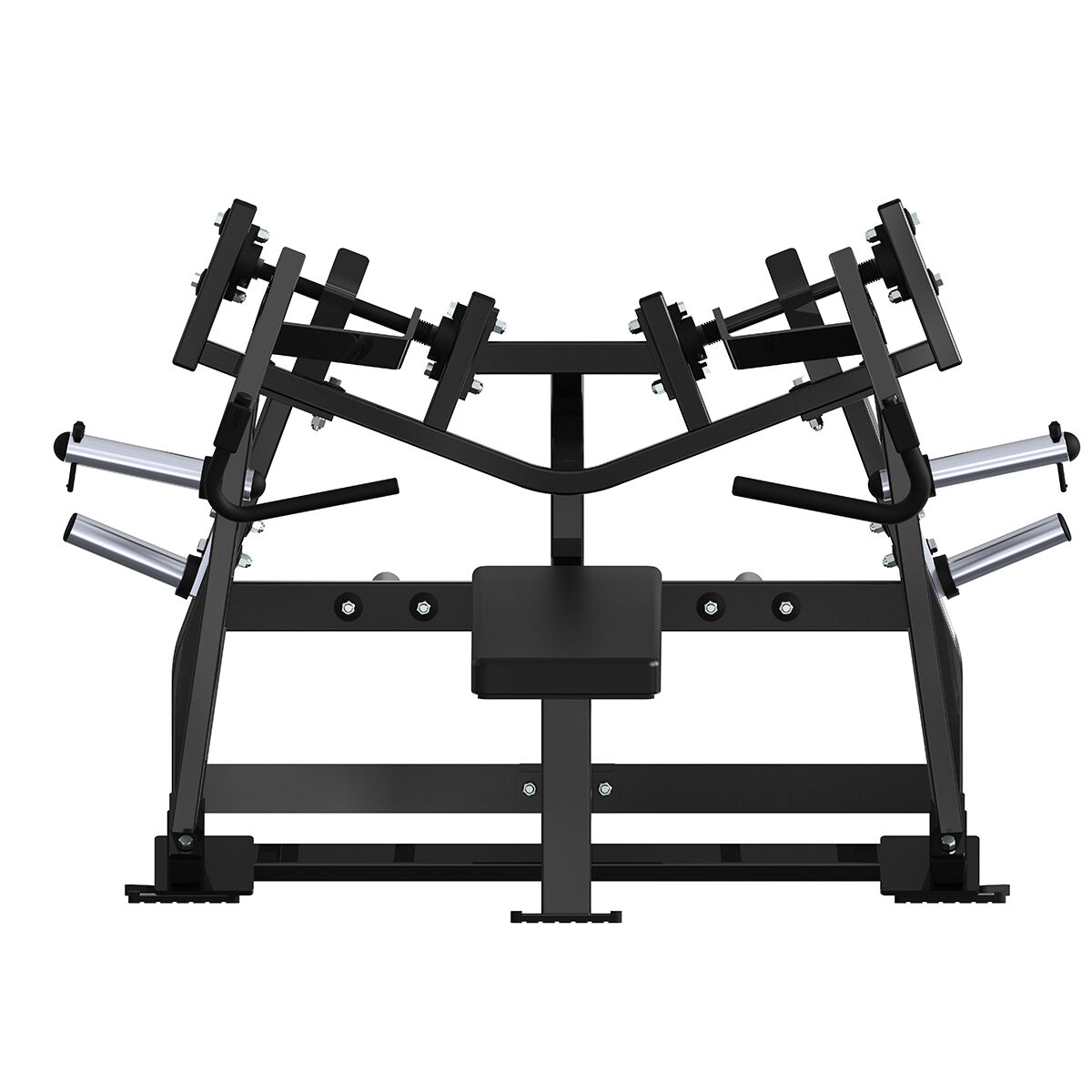 4. Commercial-Grade Sturdy Structure and User-Friendly Details To withstand high-frequency, heavy-weight commercial use, the main frame utilizes a reinforced steel structure and enhanced load-bearing design, ensuring no wobbling during unilateral explosive presses. High-density foam seats and backrests provide excellent support, and the non-slip, wear-resistant handles accommodate different hand sizes. Key connections are reinforced with industrial-grade bearings and aluminum sleeves, guaranteeing long-term smoothness and durability.