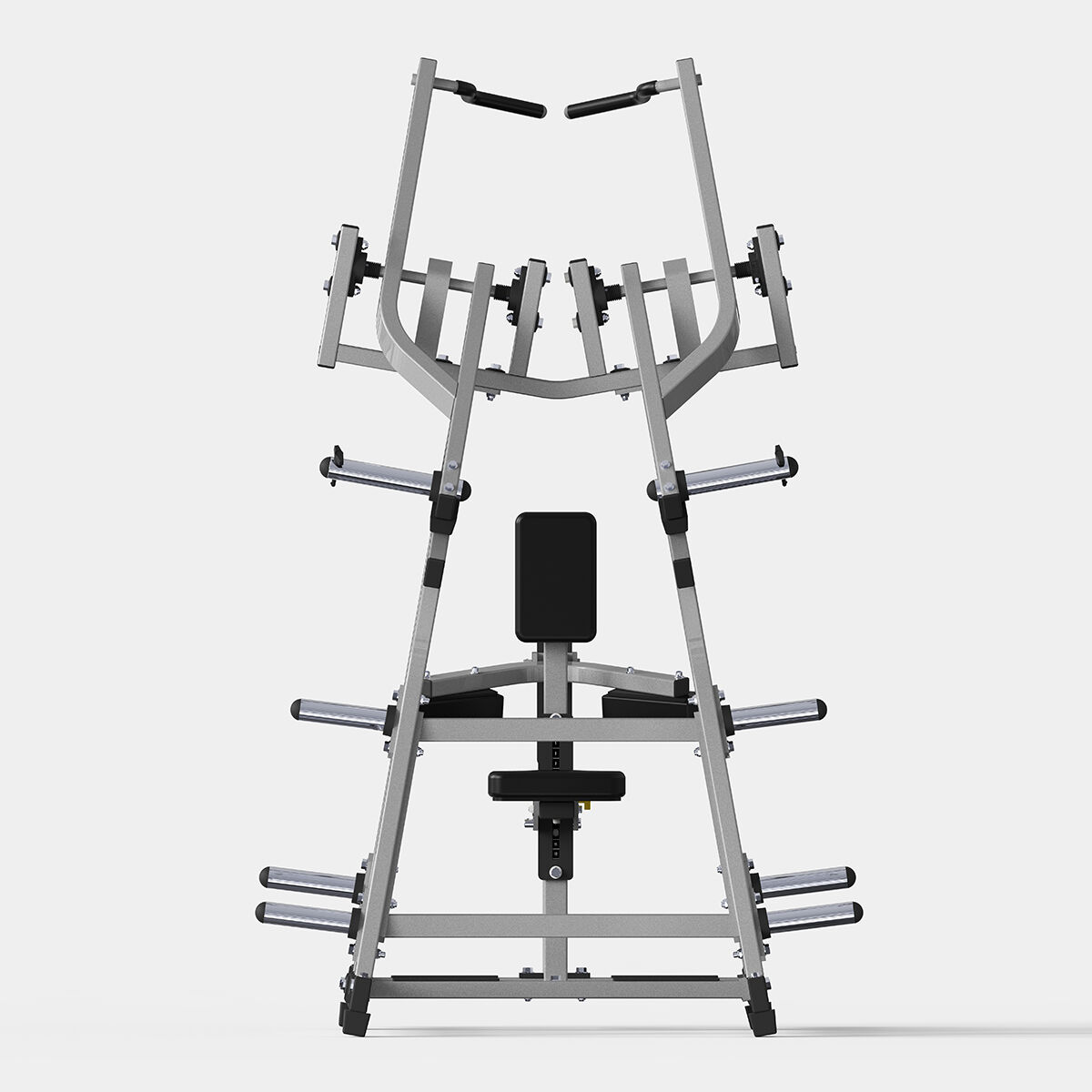 Designing a professional machine in the back training area of a commercial gym that simultaneously achieves "absolute safety and compliance," "maximum training efficiency," and "seamless adaptation to users at all levels"—from beginners seeking a safe entry point and intermediate enthusiasts eager to break through plateaus to seasoned athletes who appreciate detail—is a core engineering challenge for gyms today in enhancing their core professionalism and building long-term member loyalty. Traditional lat pulldown machines often employ a central linkage design, forcing users' arms to move symmetrically and at a constant speed. The fundamental flaws of this design are twofold: First, it systematically masks and solidifies the natural differences in strength, flexibility, and neural recruitment patterns among the left and right latissimus dorsi, rhomboid, and even rotator cuff muscles, leading to continuous neuromuscular compensation on the dominant side and exacerbating asymmetric development. Second, its common near-vertical, rigid pull-down trajectory often fails to match the significant individual differences in scapular mobility and glenohumeral joint kinematics, potentially forcing users to adopt incorrect postures such as forward shoulder tilt, lumbar hyperextension, or compensatory forward neck extension during the movement, which, in the long run, creates a clear risk of chronic strain in the shoulder, neck, and lower back areas. The split-type front lat pulldown machine (plate type) is an integrated and innovative solution born to completely end these compromises of traditional design. At its core is a completely physically separated left and right independent suspension and motion system, giving each side of the back muscles truly uninterrupted and unassisted precise training capabilities, making strength assessment and targeted correction possible for the first time in this type of exercise. Meanwhile, its unique composite arc motion trajectory, developed through precise calculations and dynamic testing, perfectly simulates the optimal biomechanical path of the latissimus dorsi muscle from full stretch (shoulder flexion and adduction) to powerful contraction (shoulder extension and adduction). This ensures that the resistance direction is efficiently matched with the muscle fiber tension line throughout the entire movement, thereby maximizing the stimulation efficiency of the target muscle group and minimizing redundant pressure on joints such as the shoulder, elbow, and spine. Therefore, this equipment is far more than just an advanced training tool; it is a comprehensive commercial ecosystem solution: its forward-looking application of environmentally friendly materials and energy-efficient design proactively aligns with and surpasses increasingly stringent international production and waste regulations; its top-level safety standards throughout design and manufacturing (such as redundant protective structures, anti-detachment pins, and emergency braking considerations) build an unbreakable foundation of risk control and trust for members and venues; and its user-friendly multi-dimensional adjustments (seat, cushion, grips), intuitive operating logic, and quiet, smooth experience significantly enhance the professionalism and satisfaction of every training session. For gyms aiming to build a high-end market brand image, meet or even lead industry compliance requirements, and are committed to creating lifelong sustainable training value for their members, it is undoubtedly an indispensable strategic core asset and a physical bridge connecting professional commitment with commercial success.