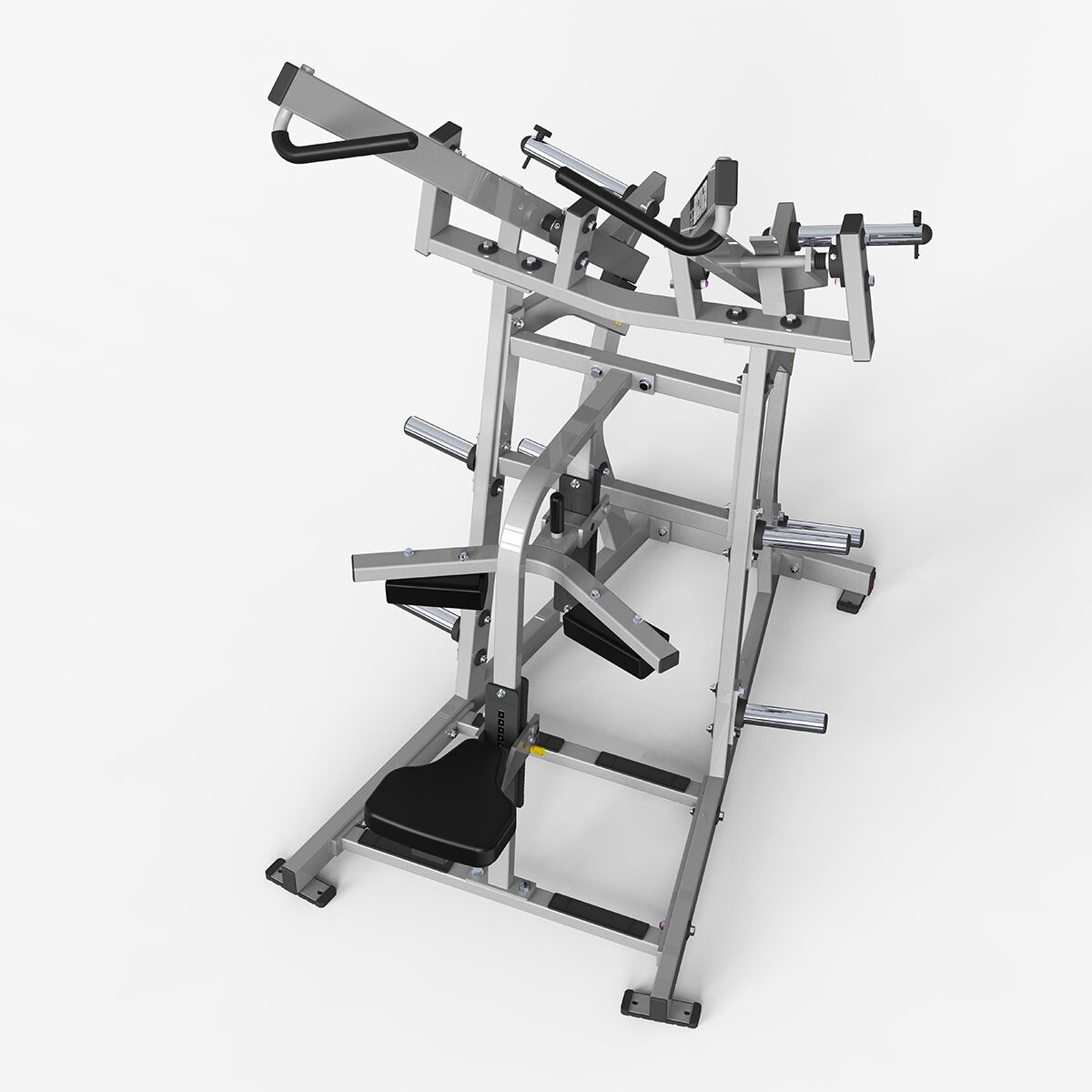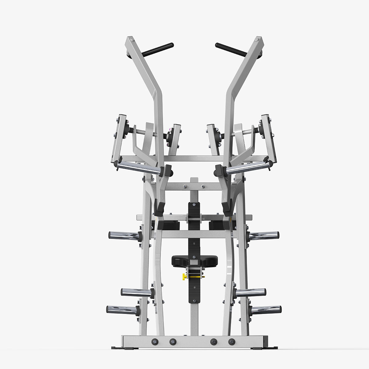 In the strategic construction of the back training area in commercial gyms, selecting a machine that can simultaneously achieve efficient visual shaping, fundamental correction of muscle imbalances, and exude a high-end professional feel is a key decision for maximizing the commercial value and member attraction of this area. Traditional lat pulldown machines generally employ a linkage axis design and a single vertical movement trajectory, which brings two limitations: First, their forced bilateral synchronous movement masks and solidifies the differences in strength, flexibility, and neural recruitment efficiency between the left and right latissimus dorsi muscles, making it impossible to intervene in asymmetrical development issues; second, their common vertical or narrow-grip pulldown patterns mainly stimulate the lower and middle regions of the latissimus dorsi near the spine and the teres major, making it difficult to provide sufficient and physiologically aligned stimulation to the muscle fibers of the upper outer edge of the latissimus dorsi, which is crucial in determining the visual width of the "inverted triangle," resulting in a bottleneck in width development. The split-motion wide-angle lat pulldown machine is a next-generation solution designed to systematically overcome these classic limitations. Its core innovation lies first and foremost in its completely independent load and drive system for each arm. This system empowers each latissimus dorsi and its synergistic muscle groups to work independently, not only revealing strength asymmetry in real time but also allowing for precise corrective training. More importantly, its unique wide-angle (wide grip) movement trajectory and handle design, biomechanically optimized, guide the user to complete an "arc adduction" movement that better aligns with the upper latissimus dorsi fiber direction, based on full scapular depression and retraction. This trajectory concentrates resistance towards the lateral edge and upper insertion area of the latissimus dorsi, maximizing the efficiency of back width shaping. Combined with a joint-friendly path that conforms to the natural movement of the scapula and avoids acromion impingement, and a durable all-steel structure designed to withstand high-frequency commercial use, this equipment aims to become a signature strategic asset for gyms. It not only effectively attracts and retains advanced trainees who pursue ultimate physical aesthetics, but also enhances the professional depth of personal training assessments and training programs through its explicit scientific design language and excellent corrective functions, thus becoming a core benchmark that demonstrates the scientific concepts and professional strength of the venue in the fierce market competition.