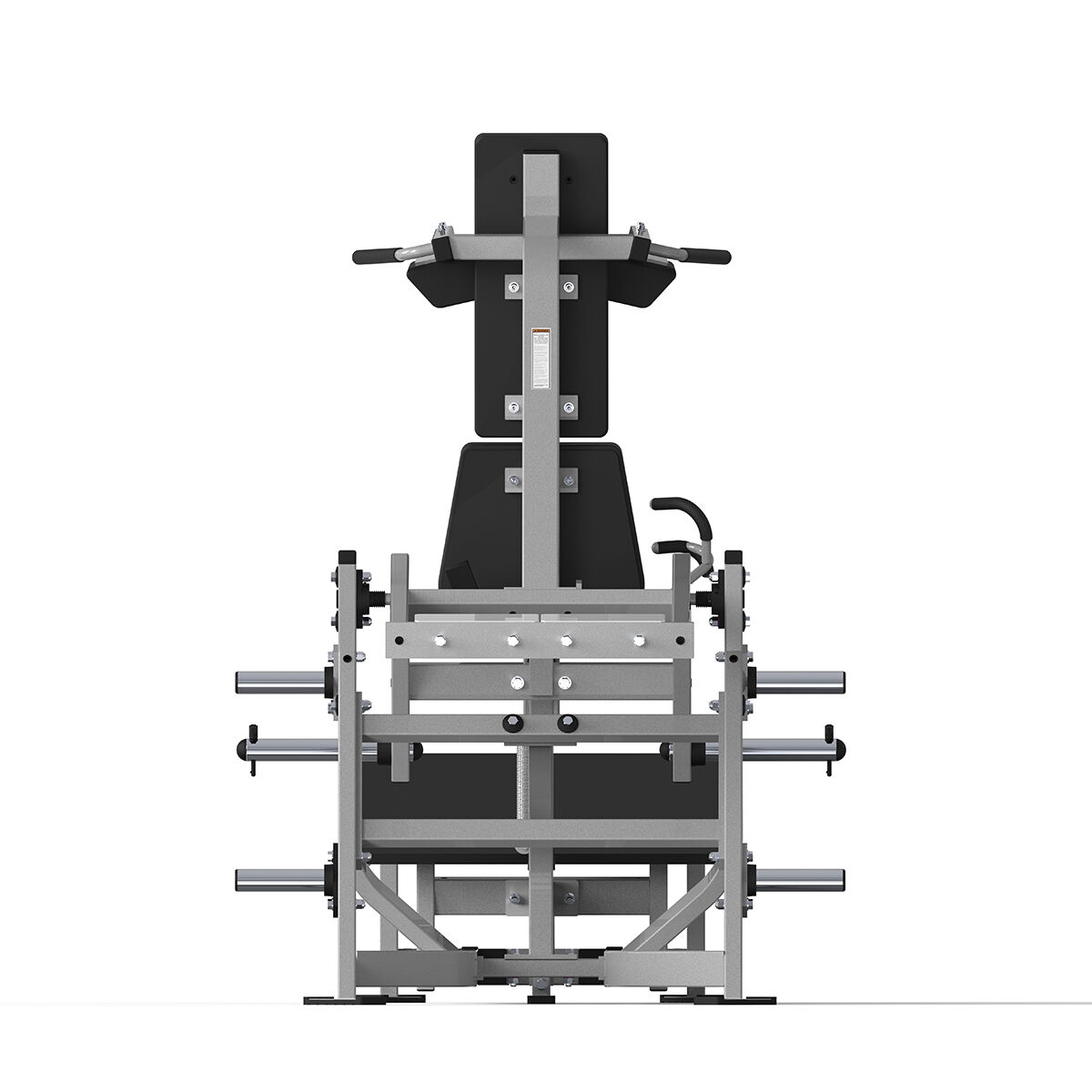 1. V-Shaped Track and Compound Stimulation Engine: Utilizing a unique V-shaped guide track system, it guides users to squat and stand along the optimal force line that aligns with the coordinated movement of the hip, knee, and ankle joints. This track efficiently integrates stimulation of the quadriceps, gluteus maximus, and hamstrings in a single movement, while significantly reducing the pressure on the lumbar spine from traditional squats. It perfectly combines the kinetic chain coordination of free weights with the safety of fixed equipment, making it the ultimate solution for achieving efficient lower limb compound training.